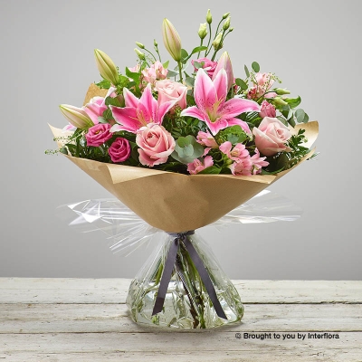 Designed by expert florists, Pink Delight New Baby hand-tied celebrates in bright pinks the arrival of a new bundle of joy.